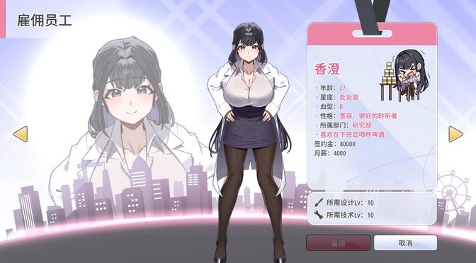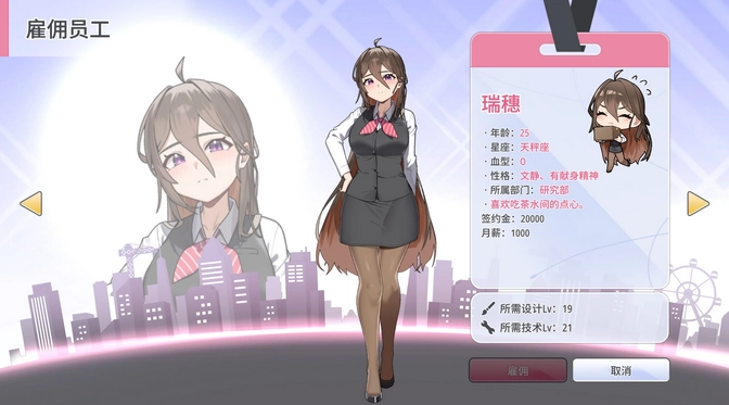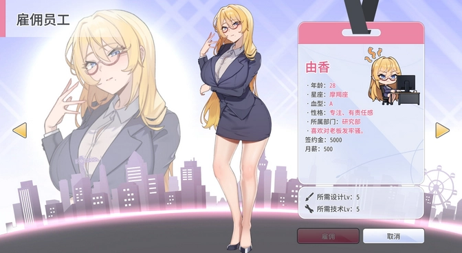 * 如果在雇佣女主时开发了一个超过一定等级的新产品,你将收到一部电影。