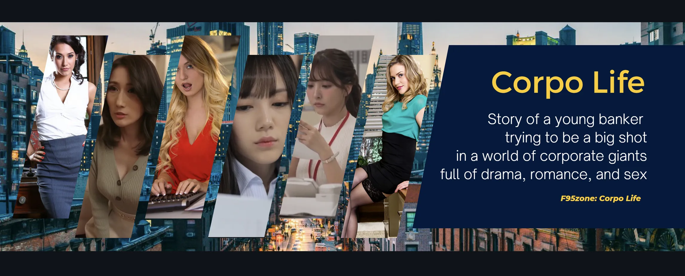 扮演华尔街一家大型银行新聘用的应届毕业生。攀登企业阶梯,成为银行中最有权势的人,并最终成为整个金融行业最有权势的人。结识漂亮的同事和企业无人机伙伴。与他们互动、交朋友和约会。如果幸运的话,您将能够结识名人、约会或与他们发生性关系。大多数扭结是亚洲女孩、办公室爱爱、JAV 和漂亮的脸蛋。